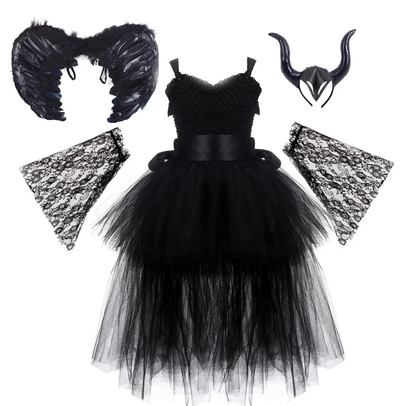 Halloween Witch Princess Dress Birthday Party Cosplay Angel Jumpsuit Children Mesh Tutu Pink Lace Sling vampire Costume for Girl